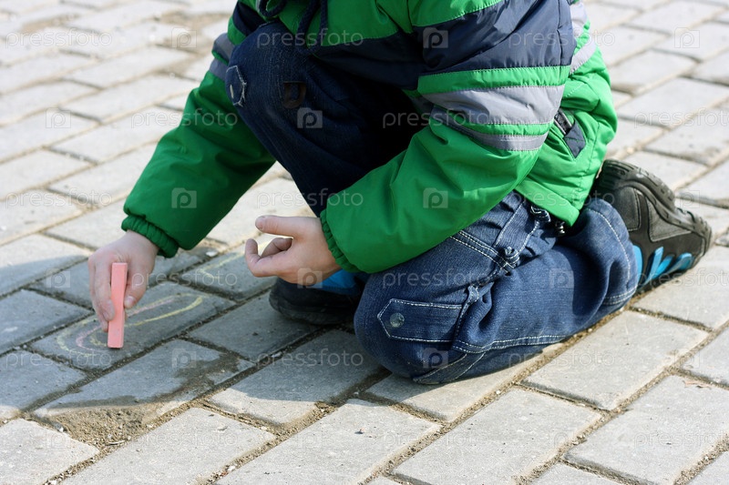 Ребенок рисует мелом на асфальте