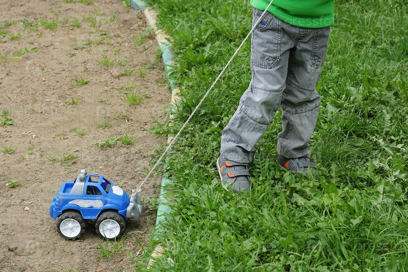 Ребенок в траве с машиной