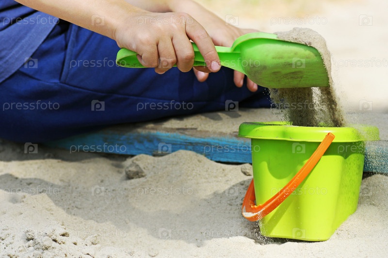 Мальчик играет в песочнице
