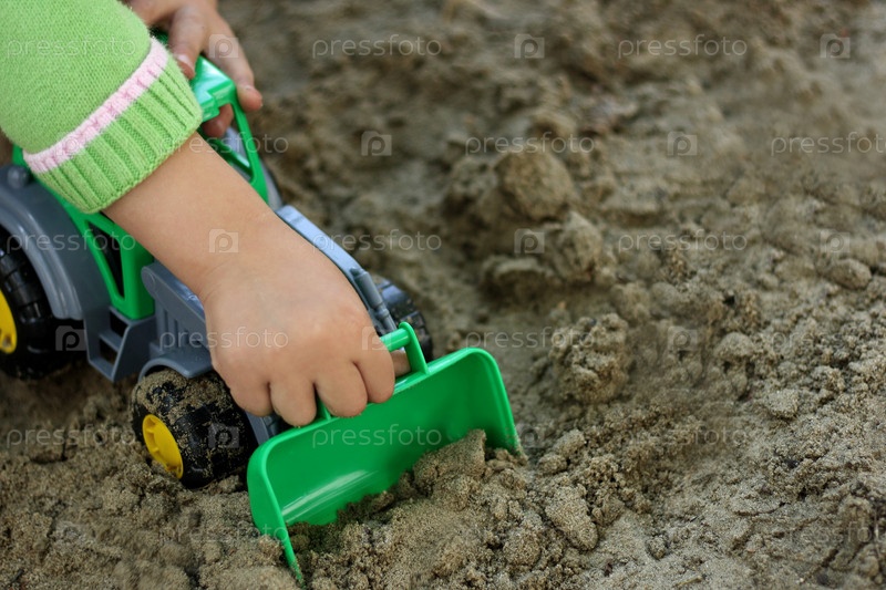 Ребенок с зеленым экскаватором