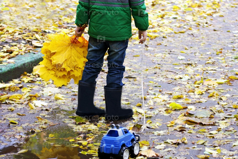 Ребенок с букетом листьев