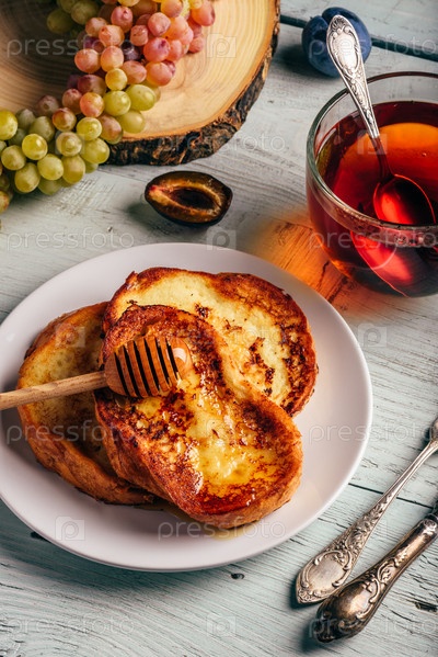Французские тосты с медом, фруктами и чаем