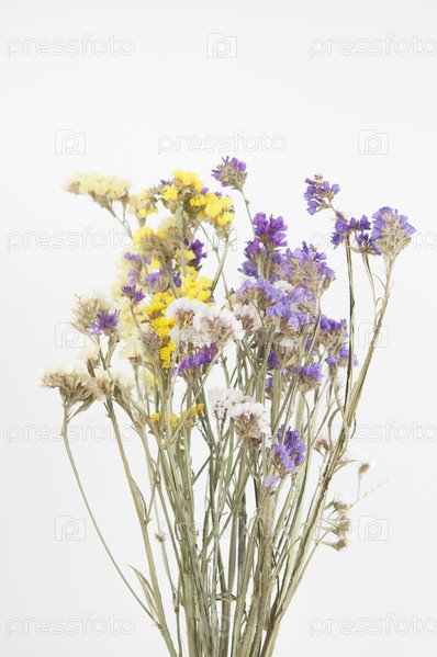 Красочные сушеные полевые цветы на белом фоне крупным планом