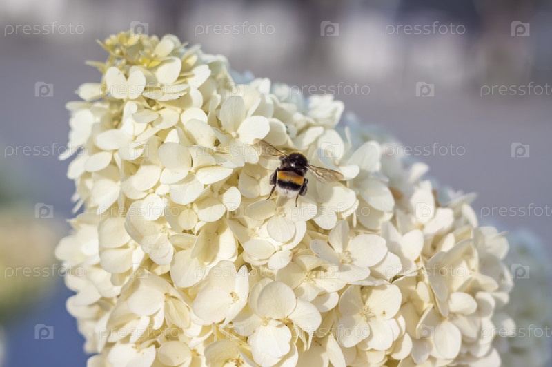 Гортензия в саду на клумбе под открытым небом. Сочное восхитительное огромное соцветие белых и розовых гортензий в саду