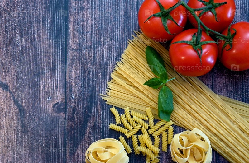 Различные макароны. Концепция приготовления пищи. Вид сверху