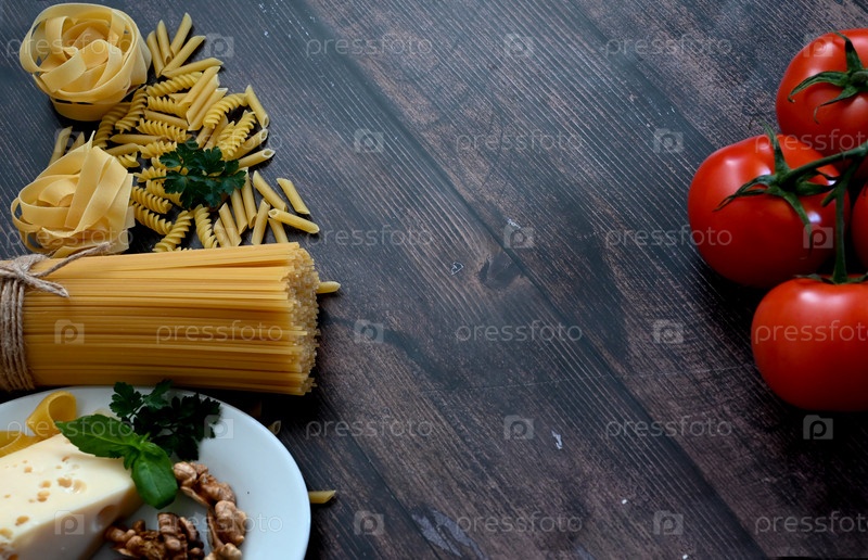 Различные макароны. Концепция приготовления пищи. Вид сверху