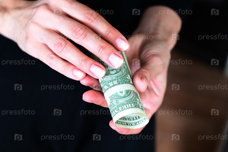 Девушка держит в руках кошелек. доллары, покупки, кошелек, полный долларов. оплатить счет