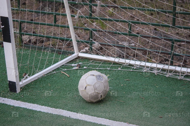 Старый футбольный мяч на неровной земле
