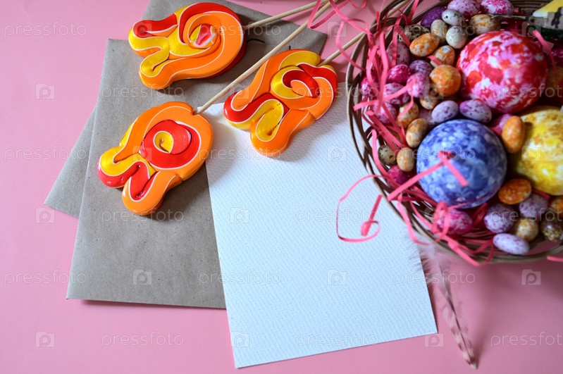 Красочные пасхальные яйца в гнезде на лугу