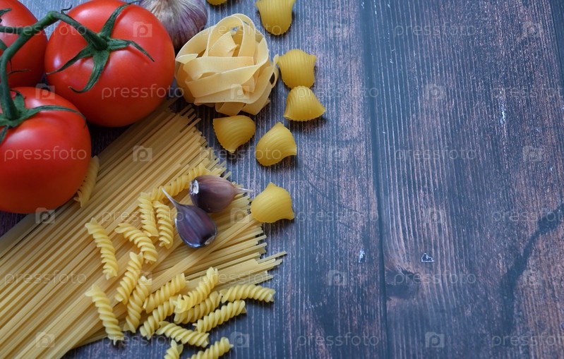 Различные макароны. Концепция приготовления пищи. Вид сверху