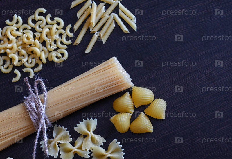 Различные макароны. Концепция приготовления пищи. Вид сверху