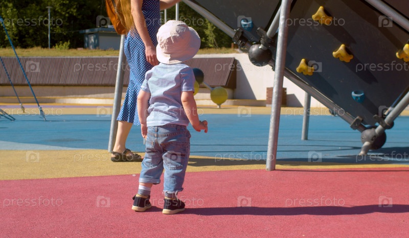 Мальчик на детской площадке в парке. Солнечный день