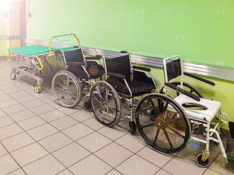 Инвалидные коляски в больнице для больных. Движение неходячих людей