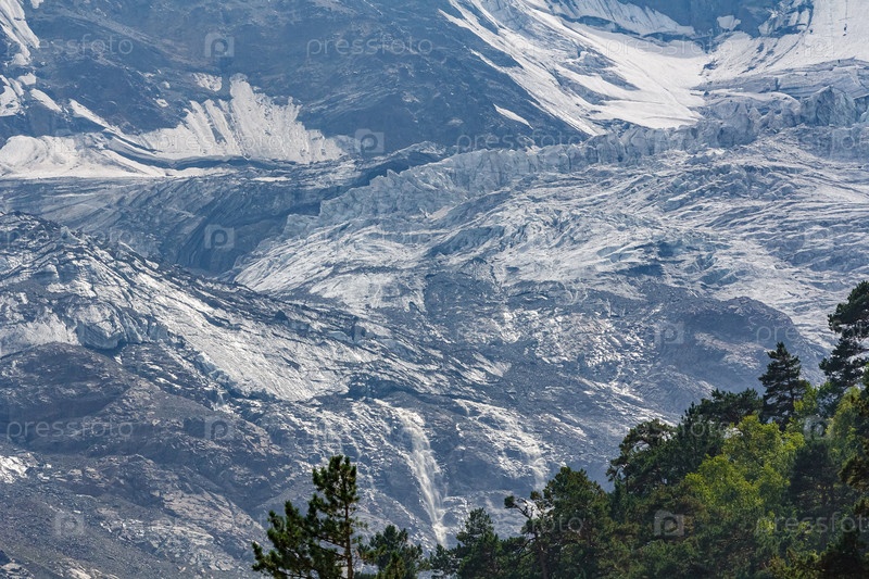 Ледник в горах Северной Осетии. Острые вершины гор Северного Кавказа