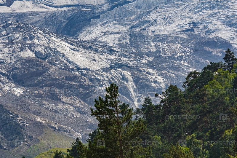Ледник в горах Северной Осетии. Острые вершины гор Северного Кавказа