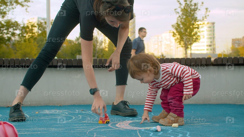 Молодая женщина играет с маленькой девочкой на детской площадке