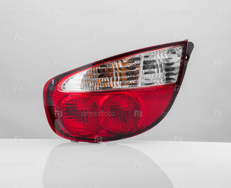 Фара автомобиля на белом фоне с отражением