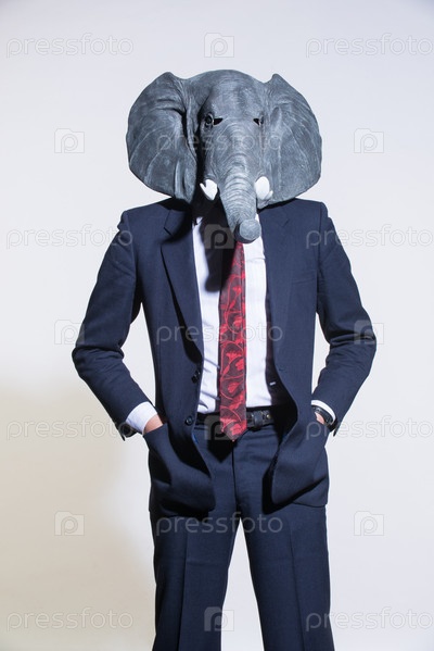 Мужчина в маске слона на светлом фоне