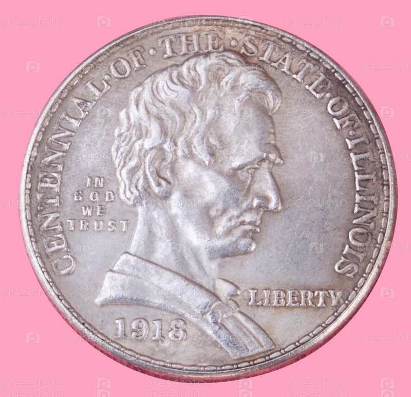 Монета в полдоллара на розовом фоне
