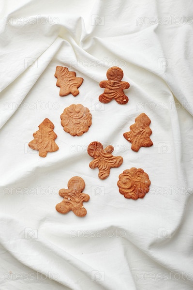Рождественские пряники на текстильном фоне