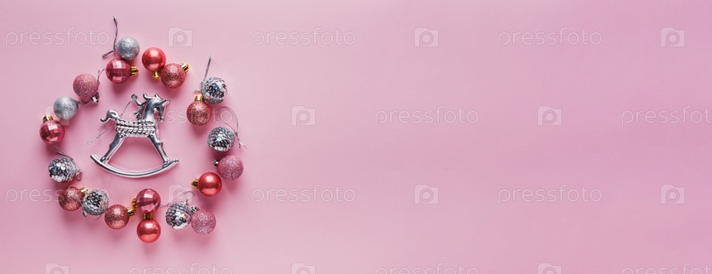 Много новогодних шаров розового цвета