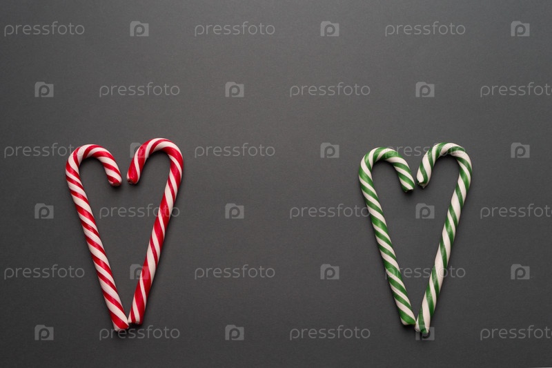 Зеленые и красные конфеты в форме сердца на сером фоне