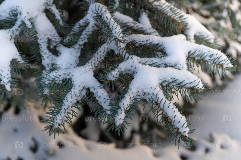 Привет, зима. Ветви голубой ели покрыты снегом