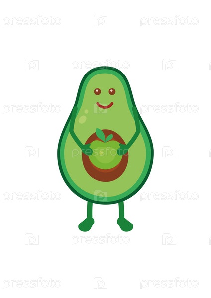 Персонаж авокадо держит яблоко