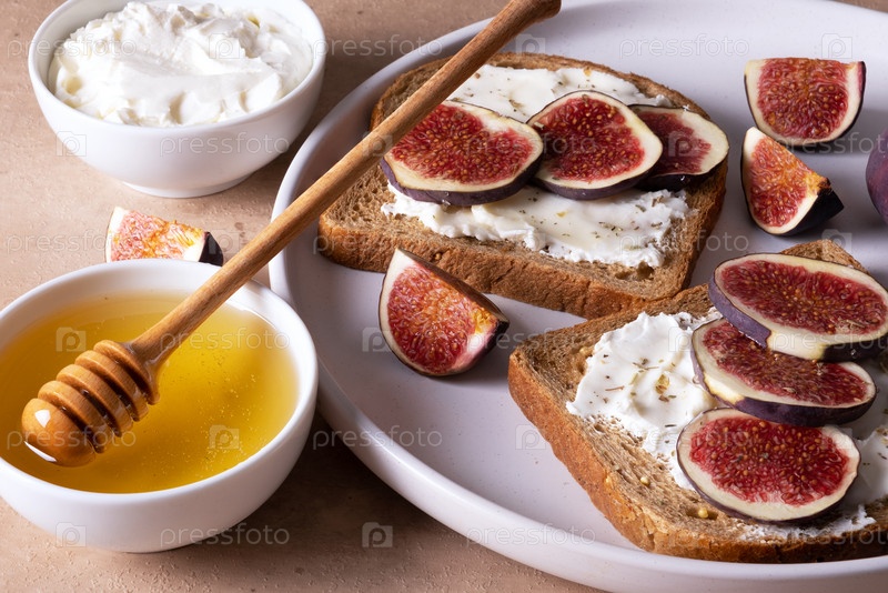 Свежий зеонский хлеб с рикоттой, инжиром, сушеными травами и медом