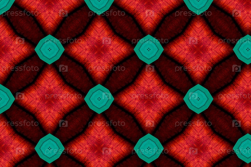 Абстрактный бесшовный узор, элемент взят с реальной фотографии. Орнамент цветной, имитирует клетчатый узор. Цветовая гамма выполнена в красных и зеленых оттенках