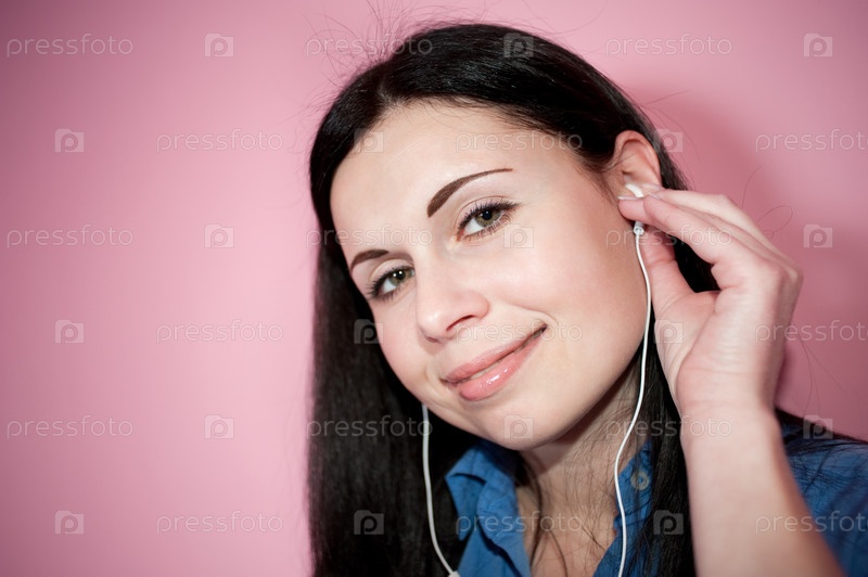 Красивая женщина слушает музыку