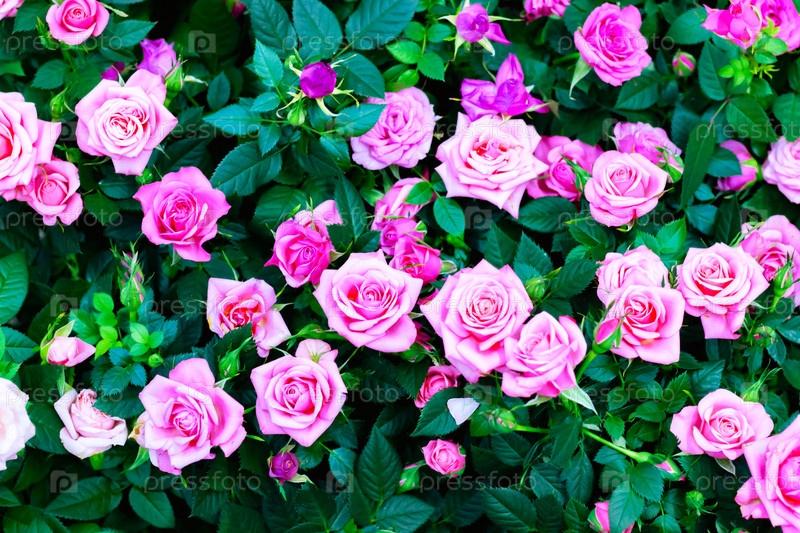 Свежий разноцветный розовый фон. Много красочных ярких роз крупным планом. крупным планом