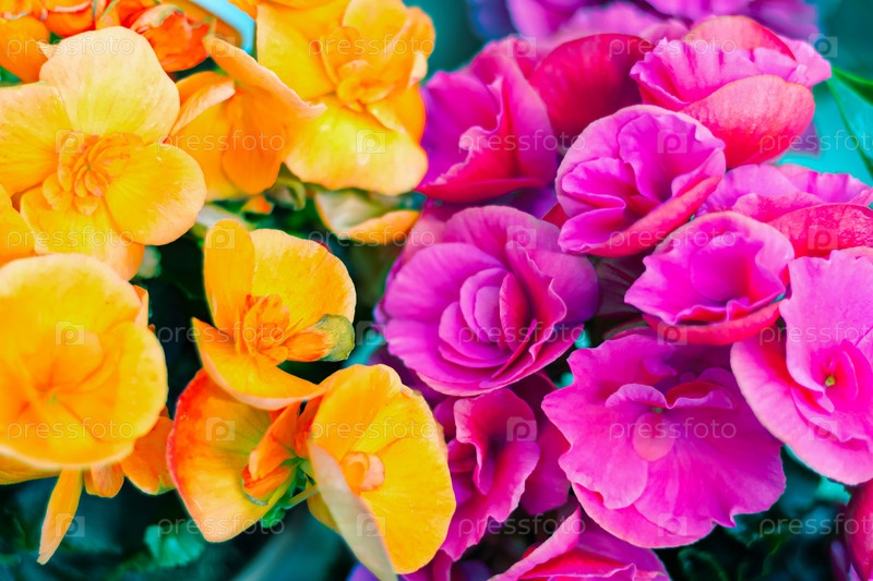 Узор красивой природной разноцветной цветочной текстуры бегонии в полном цвету в цветочном саду для фона и обоев. крупным планом
