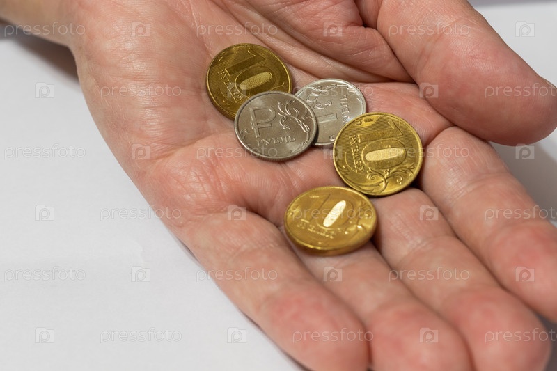 Несколько монет лежат в ладони открытого человека