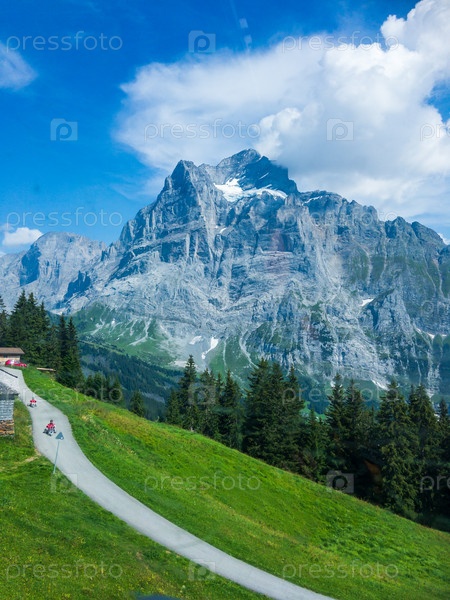 Альпийский пейзаж с видом на вершину Веттерхорна в Гриндельвальде, Бернский Оберланд, Швейцария