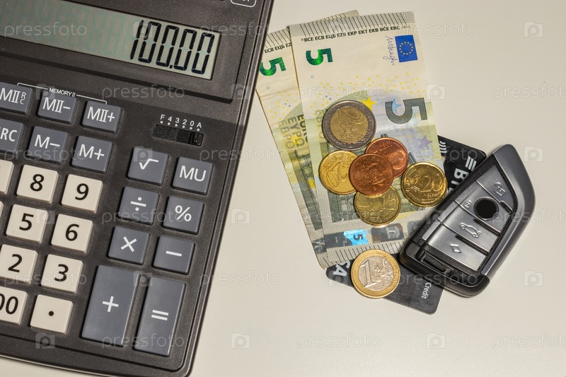 Крупный план калькулятора на фоне европейской валюты 5 евро. бизнес-концепция