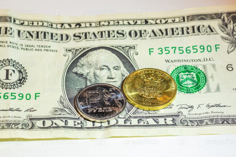 Российские монеты на долларовой купюре