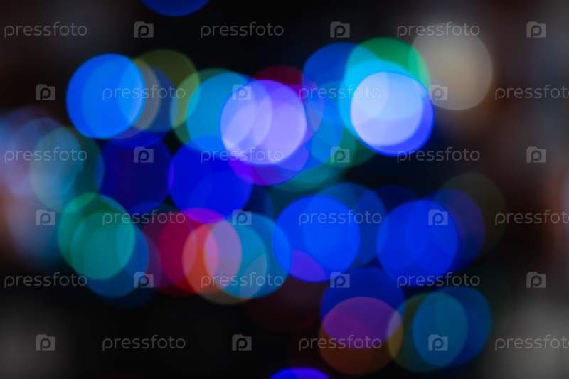 Размытое боке, фон с яркими разноцветными огнями Рождества и счастливого Нового года