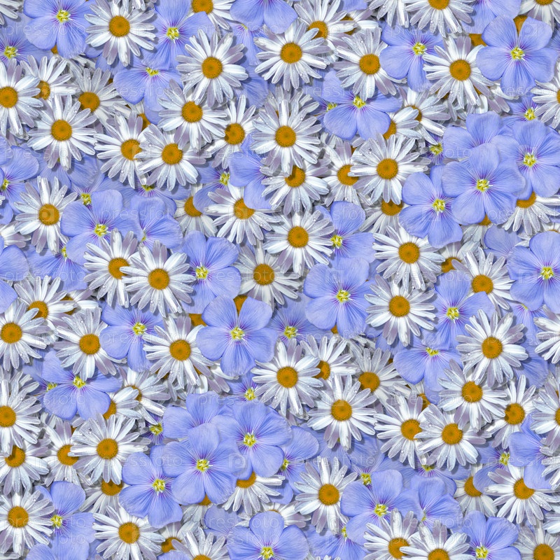 Бесшовный узор с цветами ромашки и незабудки. Вид сверху