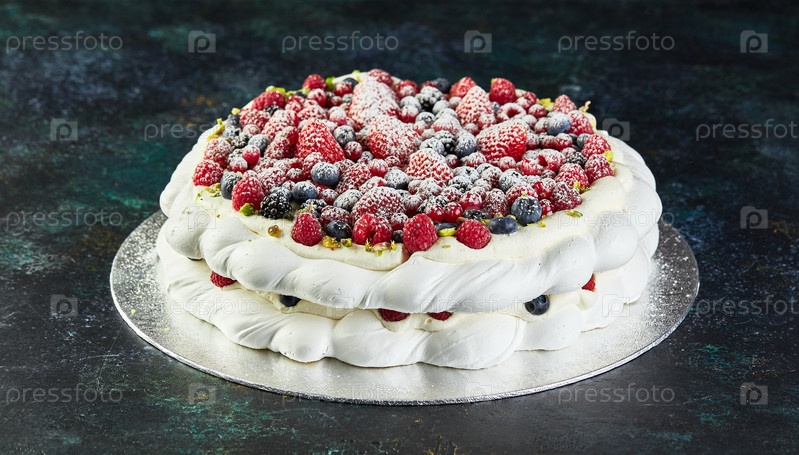 Торты-венки безе павлова со взбитыми сливками и свежими ягодами,