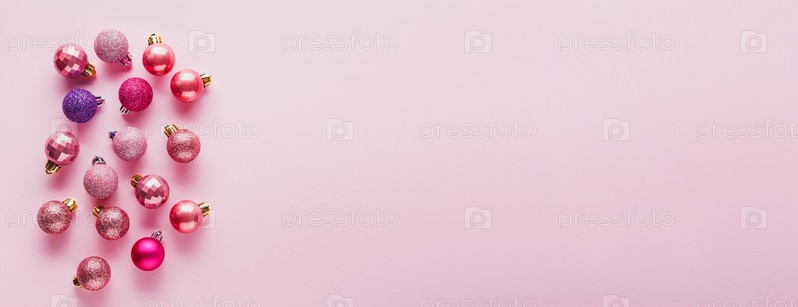 Много новогодних шаров розового цвета