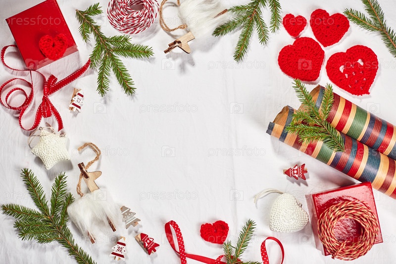 Новогодний фон с подарочными коробками и рождественским орнаментом