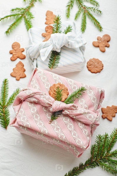 Рождественская экологически чистая подарочная упаковка в традиционном японском стиле фурошики