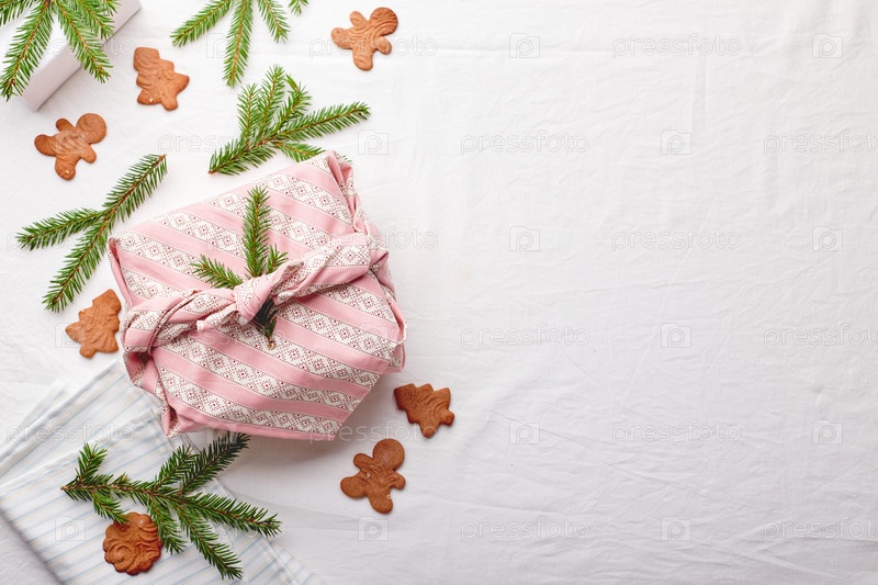 Рождественская экологически чистая подарочная упаковка в традиционном японском стиле фурошики