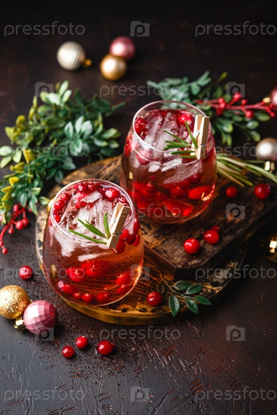 Праздничный коктейль из клюквы и розмарина со льдом. Алкогольный или безалкогольный коктейль