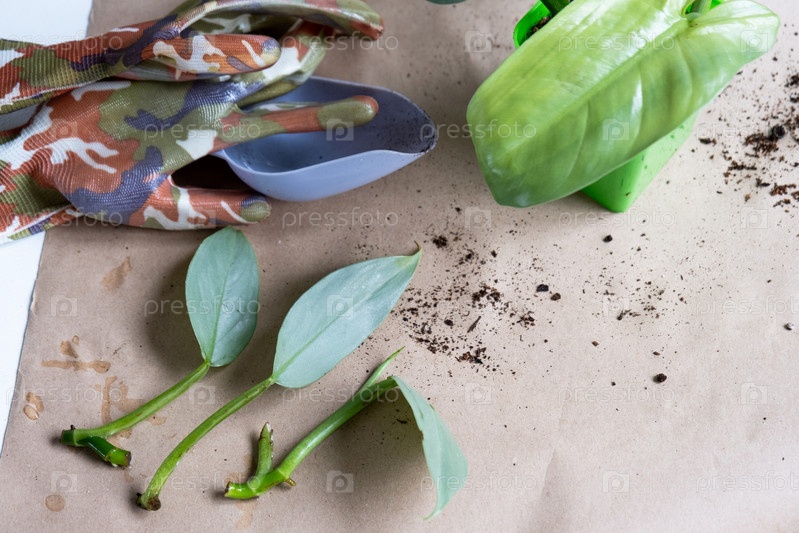 Стебель домашнего растения с корнями для размножения и посадки в горшок с грунтом. Хобби и уход за горшечными растениями, селекционное дело, черенкование