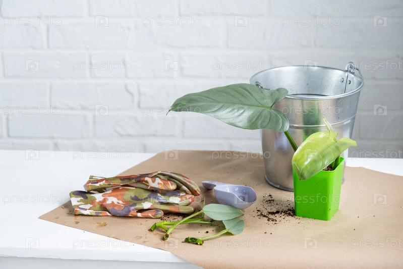 Стебель домашнего растения с корнями для размножения и посадки в горшок с грунтом. Хобби и уход за горшечными растениями, селекционное дело, черенкование