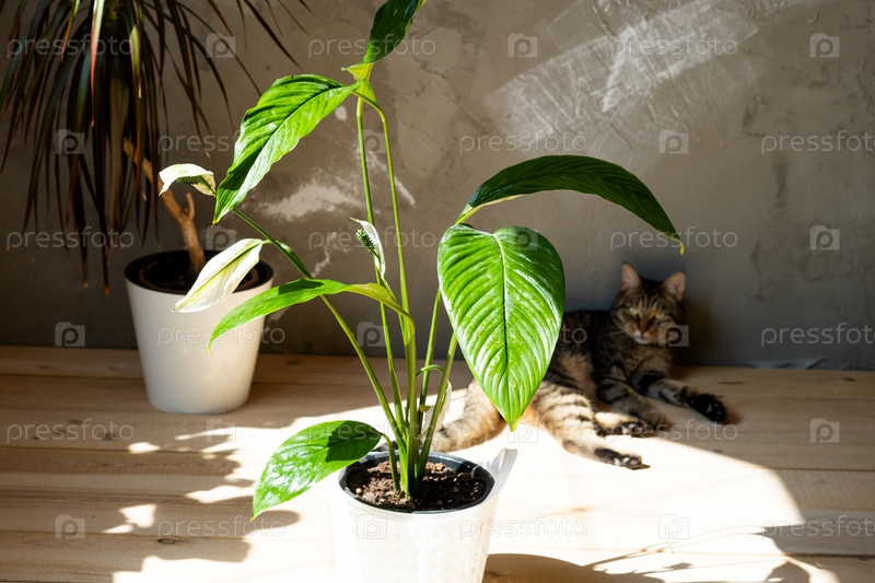 Домашнее растение спатифиллум ощущение в интерьере дома. Уход и размножение за горшечным растением, эко украшение комнаты, крупный размер