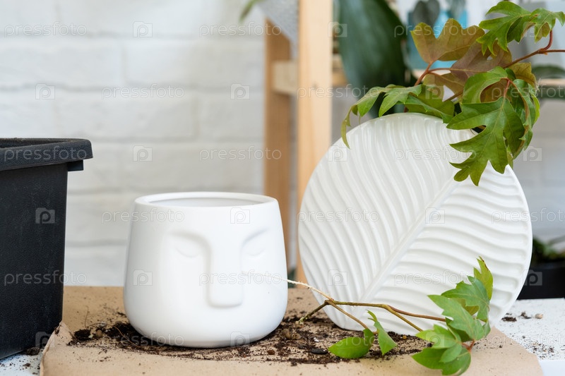 Стебель домашнего растения с корнями для размножения и посадки в горшок с грунтом. Хобби и уход за горшечными растениями, селекционное дело, черенкование