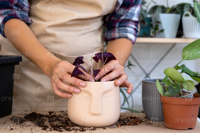 Пересадка домашнего растения в новый горшок. Пересадка филодендрона, экзотические растения, Уход и размножение горшечного растения, руки крупным планом